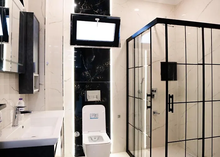 The 5-bedroom Seven Luxury Villa Belek, located about 5 minutes' walk from Xah Grand Bazaar, entices guests with a swimming pool as well as a Turkish steam bath and a Jacuzzi to relax in. Featuring a terrace, the villa is situated approximately 2 km from the Belek Beach Park.